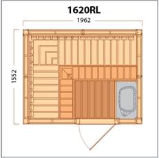 5 person Self Assemble Sauna, L Shape upper & lower bench, using a 6kW SAWO Sauna Heater. Size 1552 x 1962mm.